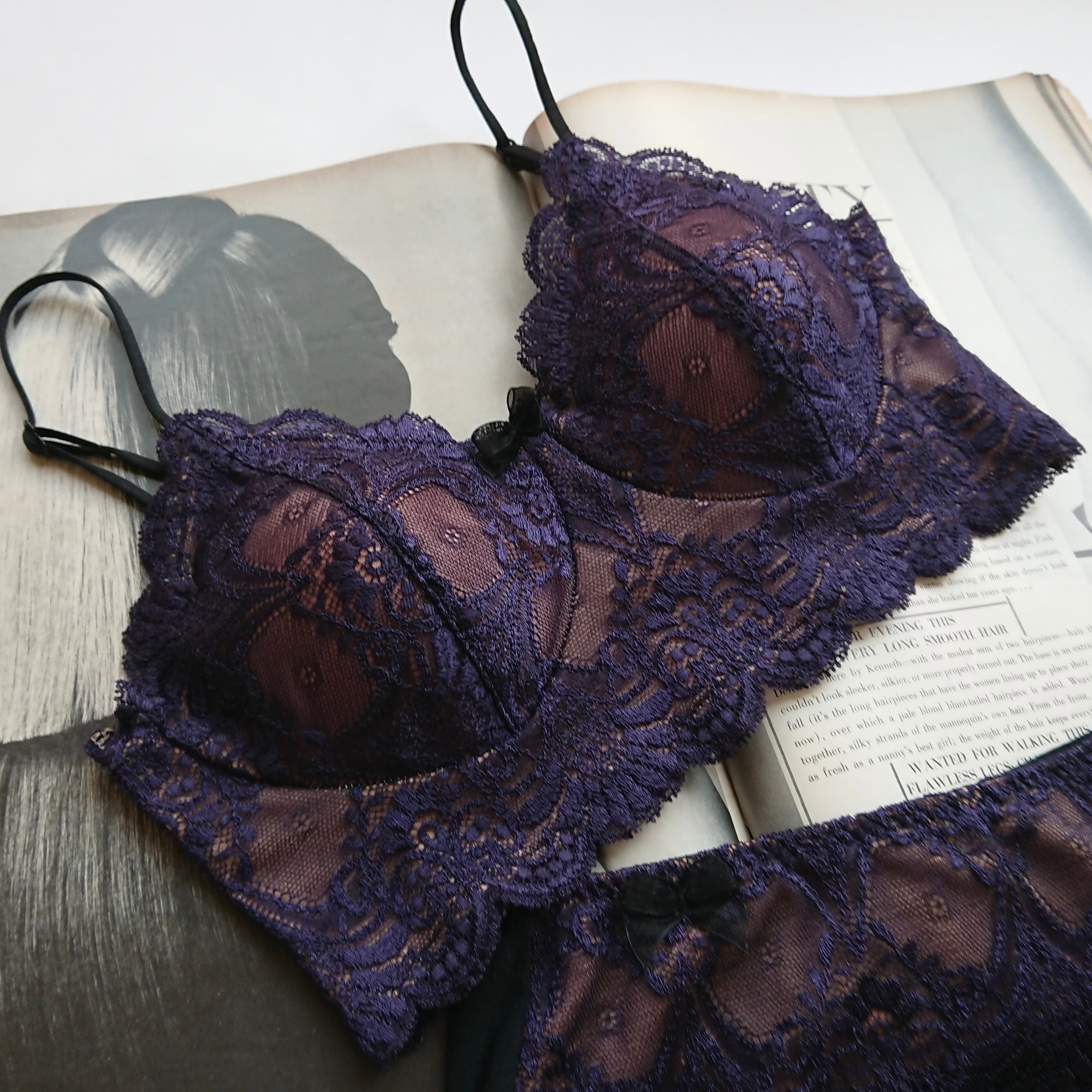 背中はホックとゴムを使用せず、コットンを裏打ちしたストレッチレースのみでレーシーな後ろ姿。