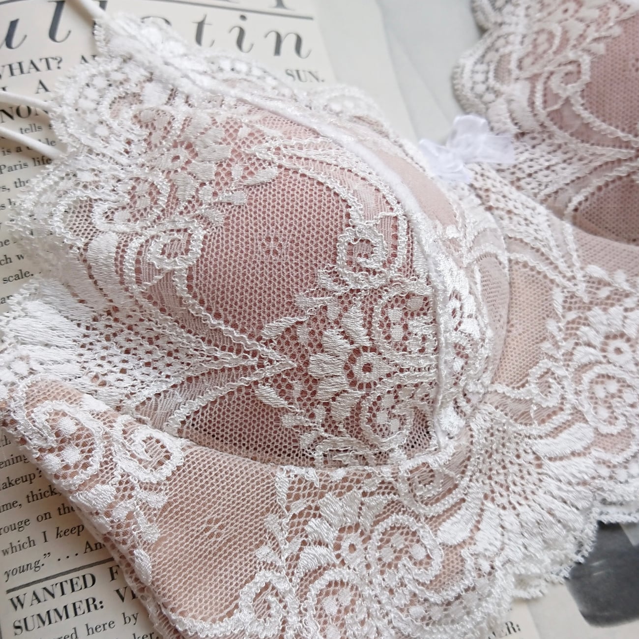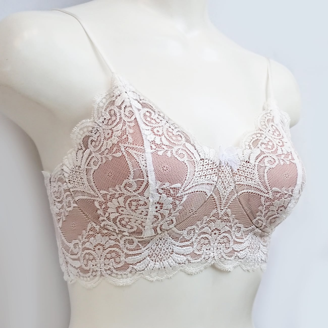 高級感のあるスカラップのレースにオーガンジーのリボン付き。