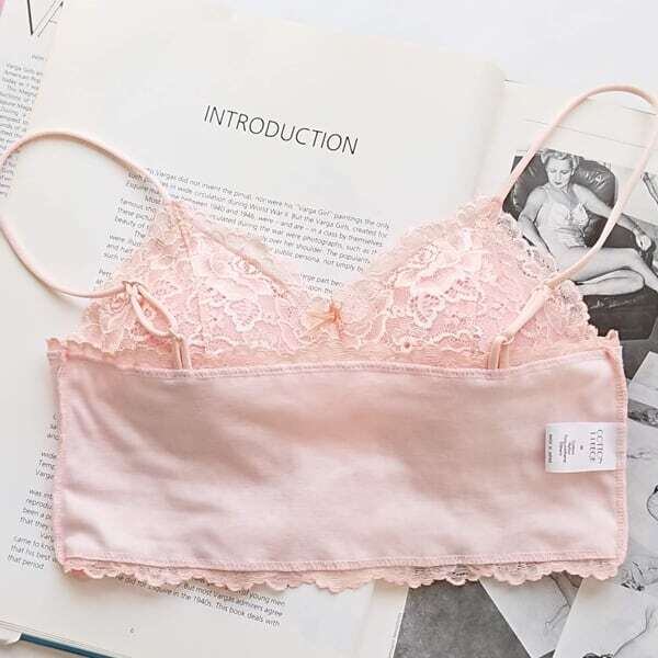 背中はホックとゴムを使用せず、コットンを裏打ちしたストレッチレースのみでレーシーな後ろ姿。