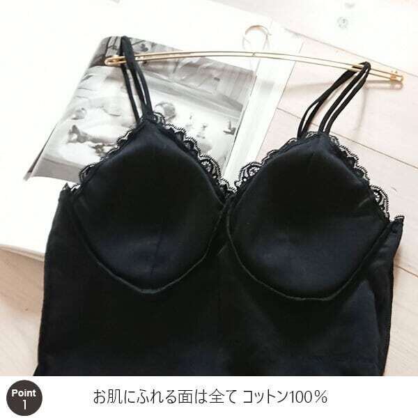 COTTON CLOSET コットンクローゼット コットン100% パット付きキャミソール 綿100%(ブラック/ホワイト)お肌に優しい 敏感肌 ノンワイヤー