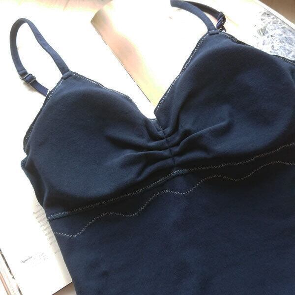 パッドを取り外すと普通のキャミソールになりますので、ブラなしでこれ一枚でもOKですが、ブラの上に普通のキャミソールとしても着る事ができます。